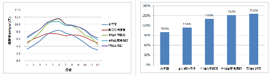 下圖對比了同一地區(qū),不同安裝方式,輻射量的差異。