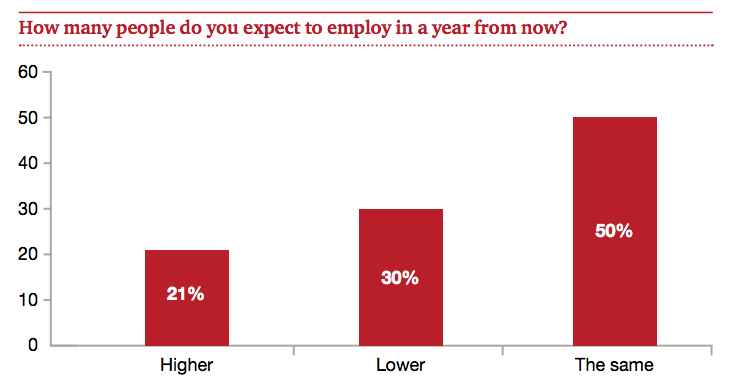 “脫歐”后英國會面臨經濟衰退的局面,失業只是一個額外打擊。只有21%的受訪者表示,他們將在未來12個月雇傭更多的工人。